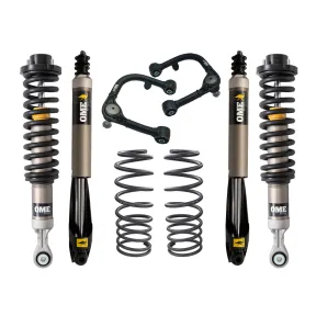 Old Man Emu offers a range of tuned and matched integrated suspension kits to ensure the right suspension is selected for how the vehicle is outfitted and the conditions it will encounter. Old Man Emu suspension systems are designed to enhance ride quality, ride control, load-carrying capacity, and ride height. When building an off-road vehicle, it's best to notate the heavy parts that you plan to add. Heavy components will slowly begin to compress your suspension which results in vehicle sag. Choosing an Old Man Emu integrated suspension kit will avoid sag and ride discomfort as our engineers have tuned and matched suspension components for an range of different weights. Old Man Emu has an offering of 3 different shock absorbers to ensure that you can find an integrated suspension kit to suit your every demand, vehicle outfit and road condition. This suspension lift kit comes with Old Man Emu MT64 shocks. The MT64 is engineered to handle every challenge, from demanding overlanding trips to the daily commute and every custom build in between, the MT64's huge 2.8 aluminum body and vehicle-specific damping ensure optimal performance across any terrain. This suspension lift kit is tuned and matched for the Toyota Tacoma to provide 3in of lift in the front, with an weight of 0lbs and provide 2in of lift in the rear with an weight of 0lbs, this kit includes upgraded upper control arms.