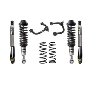 Old Man Emu offers a range of tuned and matched integrated suspension kits to ensure the right suspension is selected for how the vehicle is outfitted and the conditions it will encounter. Old Man Emu suspension systems are designed to enhance ride quality, ride control, load-carrying capacity, and ride height. When building an off-road vehicle, it's best to notate the heavy parts that you plan to add. Heavy components will slowly begin to compress your suspension which results in vehicle sag. Choosing an Old Man Emu integrated suspension kit will avoid sag and ride discomfort as our engineers have tuned and matched suspension components for an range of different weights. Old Man Emu has an offering of 3 different shock absorbers to ensure that you can find an integrated suspension kit to suit your every demand, vehicle outfit and road condition. This suspension lift kit comes with Old Man Emu MT64 shocks. The MT64 is engineered to handle every challenge, from demanding overlanding trips to the daily commute and every custom build in between, the MT64's huge 2.8 aluminum body and vehicle-specific damping ensure optimal performance across any terrain. This suspension lift kit is tuned and matched for the Toyota Tundra to provide 3in of lift in the front, with an weight of 0lbs and provide 2in of lift in the rear with an weight of 440lbs, this kit includes an upper control arm.