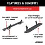 Powerful, definitive and uncompromising as a mountain ridge, ARIES RidgeStep running boards are made for those who gets it done, day after day. With their solid, all-steel construction, non-skid treads and tough powder coat finish, RidgeStep running boards are made to finish the job. Installation of these running boards is easy and secure because they use the ARIES VersaTrac mounting system. The underside of each board is equipped with a channel that accepts a set of heavy-duty bracket inserts. The inserts move along the channel to fit your truck, and the mounting hardware provides a secure attachment. These running boards are designed to fit specific years of the Chevrolet Colorado and GMC Canyon (NOTE: This set of running boards includes vehicle-specific VersaTrac mounting brackets. See the application information to verify compatibility with your vehicle). ARIES RidgeStep running boards are not only made for easier installation, but they are also built to face the harsh elements of the commercial job. They feature high-strength, solid steel construction for a step that can keep up with those steel-toe boots, and they are completely without plastic parts, meaning they will not crack or fade over time. Their stamped, all-steel tread offers a 6-1/2" wide, non-skid surface that will never wear down no matter how many times you climb in and out of your truck. The end caps are also made from steel and are welded to contour to the body of your truck for a professional finish. RidgeStep running boards come with a unique E-coat and textured black powder coat finish to not only withstand rust but also to hide minor scratches and grime.
