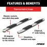 When you start and end your day turning the ignition of your truck, unreliable footing just is not an option. You need a step that can bear weight with ease, provide comfortable footing and look good doing it. ARIES 4" oval side bars are sleek, strong and custom-fitted to be a highly functional extension of your truck. ARIES 4" oval side bars are made with strong 4" elliptical tubing and are available in two different finish options to allow for full customization: polished stainless steel and black powder coat carbon steel. This set of side bars is constructed from 304 stainless steel, meaning high nickel content to be truly stainless. They easily resist rust and corrosion and feature a highly polished finish that is made to last. Something that sets the ARIES 4" oval side bar apart from all others is its blended end caps and OE-style bends. Rather than capping our side bars with a plastic cap, we offer a blended end cap for a smooth, finished appearance. We also equip the ends with a special 20-degree bend and original equipment styling to perfectly contour to your vehicle. ARIES 4" oval side bars are fitted with raised step pads to provide a wide stepping surface. The polypropylene construction will not crack over time, and because it has a textured grip, the surface is highly resistant to slips and skids, even when wet. Installation of ARIES 4" oval side bars is quick and easy with custom-fitted mounting brackets and no drilling necessary. These nerf bars fit select model years of the Ram 1500, 1500 Classic and Dodge Ram 1500 (see application info to verify fitment).