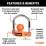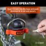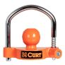 The CURT universal trailer coupler lock offers full compatibility with trailers equipped with 1-7/8", 2" or 2-5/16" couplers. Its ratchet-style mechanism allows for easy, effortless trailer coupler security. Just insert the lock base into the coupler and slide the U-bar over the coupler's nose, engaging the lock. Unlocking is a breeze – a simple quarter turn of the key frees the lock. The ratcheting U-lock combats theft and ensures extended security by immobilizing the lock base within the coupler, thwarting any attempt at removal. Its bright orange powder coat finish deters thieves and enhances visibility, allowing you easily spot tampering or interference from a distance. The U-lock, lock base and ratcheting mechanism are made to be corrosion-resistant, ensuring long-lasting durability and prolonged security. The thick and durable bright orange powder coat finish protects against sun, water and weather, effectively deterring theft, while maintaining visibility and safeguarding against dings and scratches.
