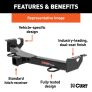 A CURT front trailer hitch allows you to use the front end of your vehicle for a variety of towing applications. They can be used for mounting a winch, a snow plow, a number of towing accessories and can even be used for some trailering applications. When space is limited, a front trailer hitch is commonly used to hold a cargo carrier, freeing up space inside the vehicle for extra cargo and making the rear mount receiver available to pull a trailer. At the boat ramp, your boat trailer can be hitched up to the front receiver hitch, giving you better control over the trailer as you launch. Some of the other accessories that can be used with a front tow hitch are the CURT winch mount, step pad, license plate holder, spare tire mount, skid shield and tow hooks. All CURT front trailer hitches provide a useful receiver tube to accept a 2" x 2" shank, and they are commonly used on trucks, vans and SUVs. This front trailer hitch is rated for 3,500 lbs. GTW and 350 lbs. TW. It also has a straight-line pull rating of 9,000 lbs. It is designed to be a custom trailer hitch for certain years of the Jeep Wrangler YJ and TJ (to verify your vehicle compatibility, see application info). It comes with all necessary hardware for a complete installation and is backed by a limited lifetime warranty.