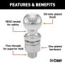 CURT 1-7/8" trailer balls are constructed from high-strength steel to match the towing power of your class 1 or class 2 trailer hitch and ball mount and come with fine threads on the shank for improved holding strength. Having a trailer ball that matches your coupler size is absolutely essential. At CURT, we engineer our trailer balls to be precisely fitted. When we stamp 1-7/8" into the top of each hitch ball, we actually mean 1-7/8".This CURT tow ball features a ball capacity of 2,000 lbs. It is able to tow most utility trailers, boat trailers, campers, smaller livestock trailers and some recreational vehicle haulers (NOTE: Never exceed the lowest weight capacity of any towing component; i.e. the vehicle, hitch, trailer, etc). As with any trailer, be sure that your towing equipment is capable of handling the load before hitching up. This trailer ball also features a 3/4" shank diameter, a 1-5/8" shank length, 0" of rise and a nickel-chrome finish to protect against corrosion and wear. Like all CURT trailer balls, our 1-7/8" balls are tested for your safety and meet all U.S. VESC specifications.