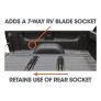 • Routes a 7-way RV blade socket into truck bed while retaining use of rear socket