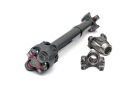 This double cardan style CV driveshaft is necessary for Jeep JK models equipped with 3.5in - 6in short arm suspension lifts or 2.5in - 6in long arm suspension lifts. It features a replacement flange for the differential pinions as opposed to using an adapter flange. These flanges are machined from solid billet steel. They are designed to accept standard " off the shelf" mating flanges. If these flanges ever break, you at least stand a chance of getting a replacement part from almost any drive line shop. This also nets a longer drive shaft with the center of the universal joint closer to the pinion bearing.