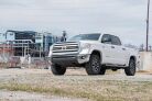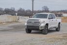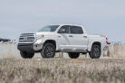 Rough Country's 2.5" - 3" Leveling Suspension Kit for Toyota Tundra is the most innovative way for you to level the front of your vehicle with the rear, allowing you to dial in the angle you desire. Featuring a set of front, upper strut extensions, this kit can accommodate up to a 33" tire. This kit now includes two sets of 0.25" spacer shims, which can be used in addition to the strut spacers to fine-tune your level angle. Each shim provides roughly 3/8" of lift. Use both for a full 3" level, or fewer to leave a little rake in the front end angle - this is specifically great for individuals who prefer a slight nose down look for an aggressive head-on view, or routinely pull trailers and haul items that would potentially draw the nose up from a full level stance. Designed by Rough Country's in-house Research and Development team, these components are engineered for a precise fit and incorporate superbly with factory equipment. A set of skid plate spacers allow use of the stock skid plate, and all components are easily removable should the vehicle need to be returned to stock height. A set of differential spacers help maintain factory ride quality, promoting optimum angles for the front CV axle after lifting. 100 % bolt-on installation makes setup a breeze, and all components are protected by Rough Country's Lifetime Replacement Warranty.