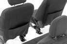 Want to protect your seats or are your seats showing signs of wear and tear from daily use? Say goodbye to unsightly stains and deterioration with Rough Country's Neoprene Seat Covers - the ultimate solution for preserving your vehicle's interior. Snug Fit for Optimal Protection: Our seat covers are tailored to fit your seats perfectly, providing a protective barrier against spills, scratches, and everyday wear and tear. Factory-Spec Construction: Engineered to meet factory specifications, our covers blend seamlessly with your vehicle's interior, giving it a fresh, new look without compromising on quality or style. Four-Layer Defense: With a four-layer construction featuring foam padding and a durable polyester shell, our seat covers offer unmatched protection and longevity, ensuring your seats stay looking new for years to come. Breathable and Water-Resistant: The neoprene layer not only provides breathability for added comfort but also boasts water-resistant properties, safeguarding your seats from spills and stains. Complete Coverage: Our covers come with full protection for your front seats, including headrest covers where applicable, as well as rear covers to shield your back seats from children and pet-related mishaps. Peace of Mind Warranty: Rest easy knowing your purchase is backed by our two-year warranty, giving you confidence in the durability and reliability of our product. Don't let worn-out seats diminish your driving experience. Upgrade to Neoprene Seat Covers today and enjoy a fresh, stylish interior that's protected against the rigors of daily life on the road.
