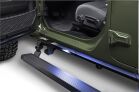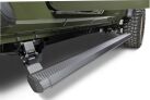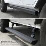 Real Trucks retractable VoltStep Electric Running Boards model #20451687PC allow you to step in and out of your Jeep Gladiator with ease. Open your door and the E1 electric powered steps automatically deploy, providing a secure 6" wide durable aluminum running board with an anti-slip stepping surface. For additional safety and security, the powered side steps are equipped with integrated LED lights that turn on automatically when the running boards/side steps deploy. Close your Jeep Gladiator door and the VoltStep running boards automatically retract, providing your vehicle with optimal ground clearance and protection for its rocker panel while preserving the look of your Jeep Gladiator. The VoltStep retractable running boards are equipped with dual electric powered motors on each running board/step. The VoltStep Electric Running Boards are reliable even in extreme climates and weather conditions. The easy-to-install, magnetically activated door switches leave your OBD port free for other accessories. Automatic safety stop and manual override capabilities of the powered side steps are included. The model #20451687PC E1 electric powered steps are finished with a textured black powder coat and have black nylon step end caps. The VoltStep Electric Running Boards come as a complete kit with a Limited Lifetime warranty on materials and construction and a 5 year warranty on the powered step's Textured Black Powder Coat finish.