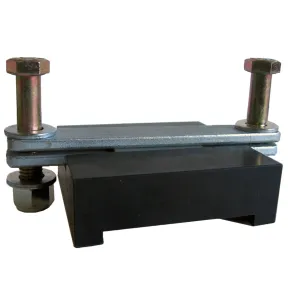 Mounting kits and poly spring pad mounting blocks are used as a fulcrum centered underneath SuperSprings. They sit on top of the factory spring pack assembly underneath the SuperSprings. They act to elevate, insulate, and anchor the SuperSprings to the factory spring assembly.