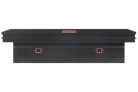 Introducing the re-designed WEATHER GUARD Saddle Box, featuring One Key Simplicity, Improved High Security Locking System, and now PowerSync Capable. The Model 117-6-03 is an extra wide aluminum truck tool box for full size trucks and is powder coated in a gunmetal gray ARMOR TUF finish ensuring years of dependability. The box features the new push button lock that can code multiple boxes on a truck or entire fleet to the same key. The improved high security locking system provides unmatched protection. The box is now compatible with the new PowerSync interior lights and remote keyless entry accessories.