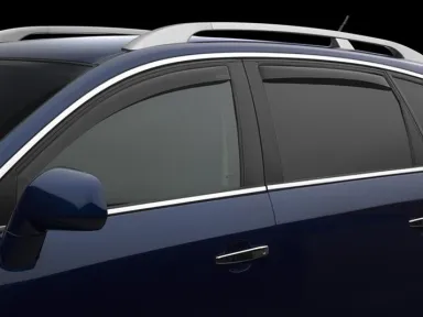 WeatherTech Side Window Deflectors offer you fresh air enjoyment with an original equipment look. They are crafted in Germany from the finest 3mm lightly-tinted acrylic material available. Installation is quick and easy, with no exterior tape needed. WeatherTech Side Window Deflectors are precision-machined to perfectly fit your vehicle. These low profile window deflectors help to reduce wind noise and allow interior heat to escape. Also available in dark tint for most vehicles.